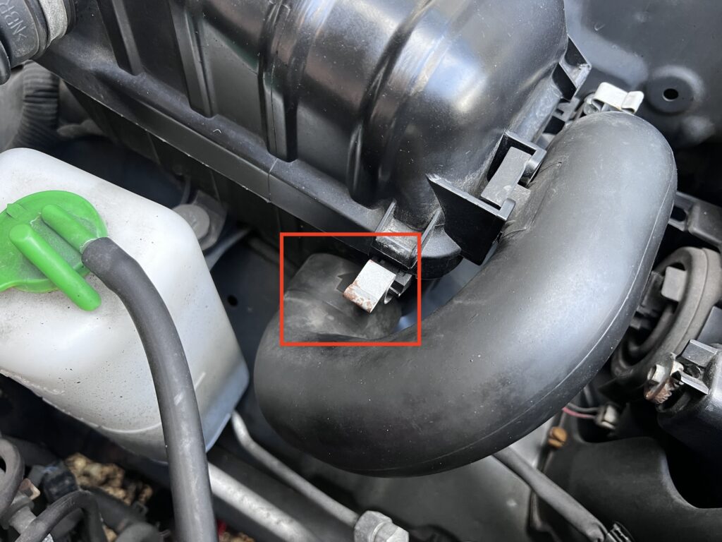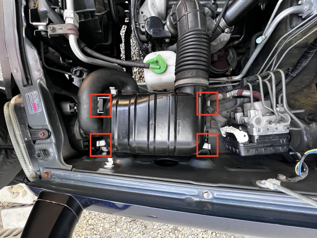 エンジンルーム右側の箱が今回交換するエアフィルターの居場所です。